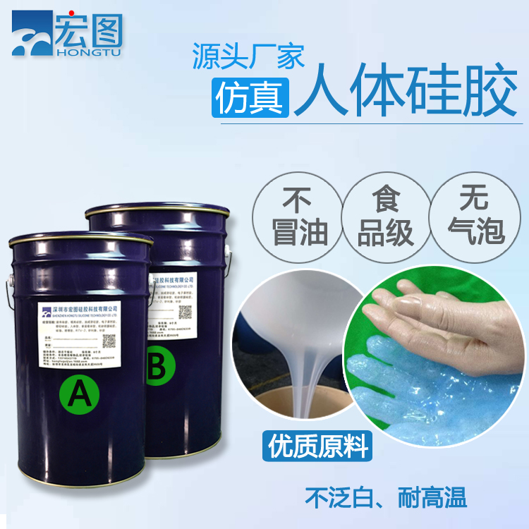 仿真人體硅膠是一種加成型A、B雙組份液體硅膠,AB均為無色液體。人體硅膠無毒無味、安全環(huán)保,AB組分配比為1:1,可室溫固化也可以加溫固化。